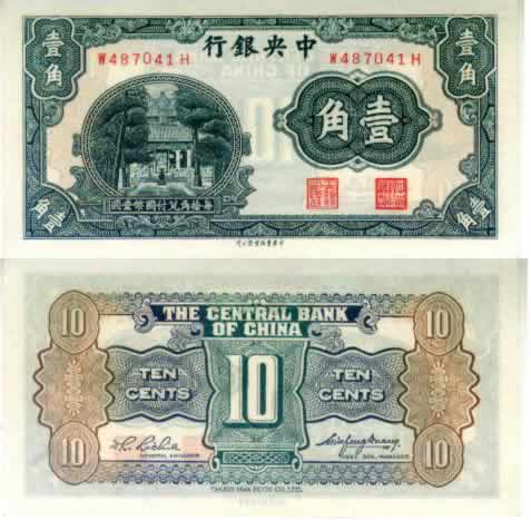 中央银行银圆辅券1角
