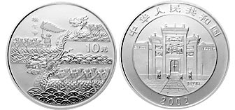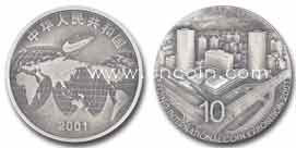北京时间7月13日晚,国际奥委会第112次全会以不记名投票方式选出了2008年奥运会主办城市,国际奥委会主席萨马兰奇庄严宣布:2008年奥运会的主办权属于北京!为了纪念这一历史性的日子,纪念北京申办2008年奥运会成功,中国人民银行定于2001年7月15日发行庆祝北京申办2008年奥运会成功纪念银币1枚,该币为中华人民共和国的法定货币。 该纪念银币正面图案为国名,年号,彩色申奥标志,镀金"V"字,群众体操造型。申办会徽由奥运五环色构成,形似中国传统民间工艺品的“中国结”,又似一个打太极拳的人形。图案如行云流水,和谐生动,充满运动感,象征世界人民团结、协作、交流、发展,携手共创新世纪;表达奥林匹克更快、更高、更强的体育精神。申办会徽正下方为“2008”及“BEIJING”字样,寓意北京申奥成功。 该纪念银币背面图案为天坛祈年殿及敞开的宫门,面额以及"庆祝北京申奥成功纪念"中文字样。