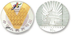 - 北京时间7月13日晚,国际奥委会第112次全会以不记名投票方式选出了2008年奥运会主办城市,国际奥委会主席萨马兰奇庄严宣布:2008年奥运会的主办权属于北京!为了纪念这一历史性的日子,纪念北京申办2008年奥运会成功,中国人民银行定于2001年7月15日发行庆祝北京申办2008年奥运会成功纪念银币1枚,该币为中华人民共和国的法定货币。 该纪念银币正面图案为国名,年号,彩色申奥标志,镀金"V"字,群众体操造型。申办会徽由奥运五环坛祈年殿及敞开的宫门,面额以及"庆祝北京申奥成功纪念"中文字样。