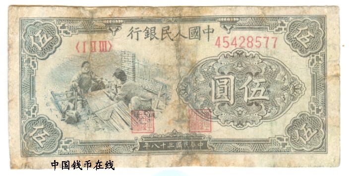 第一版人民币红五拾<已经