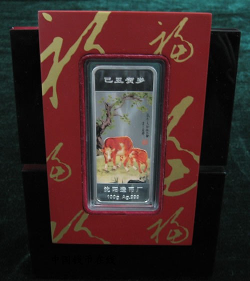 彩色2009牛(己丑)年贺岁银条300克,发行量20000根,- ::商品简介::