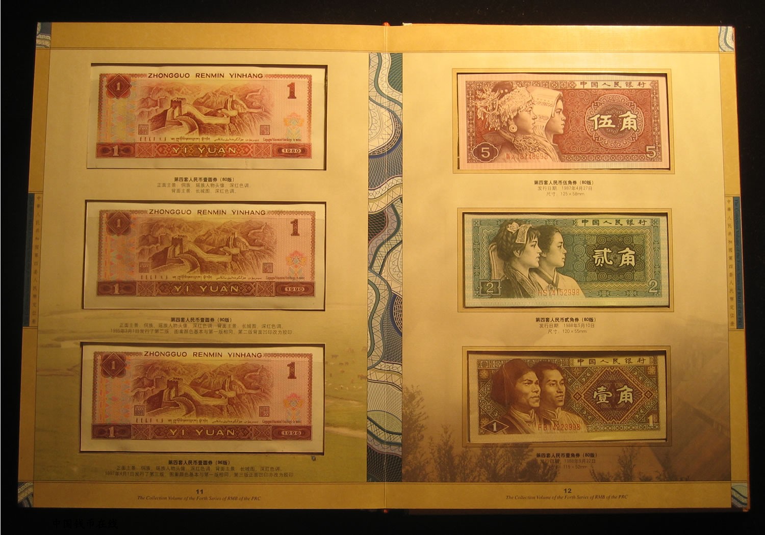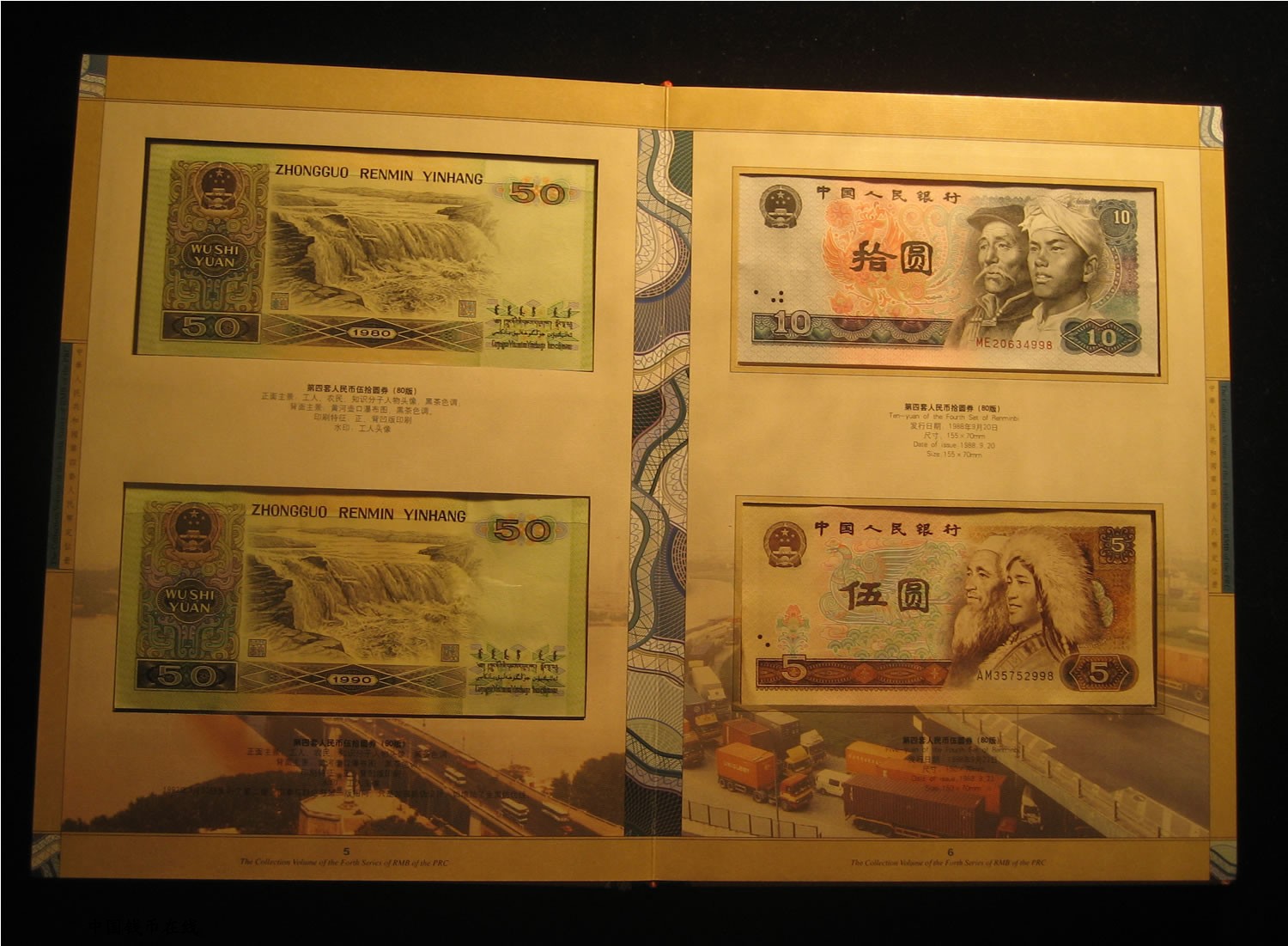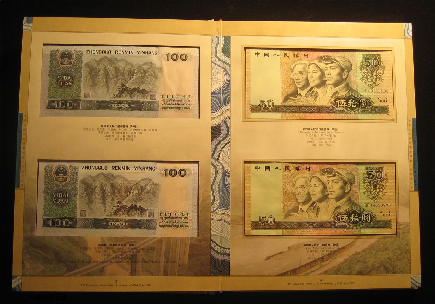 第四版人民币3同号大全套豪华珍藏册1980年50元为EE开头连体钞裁切的.