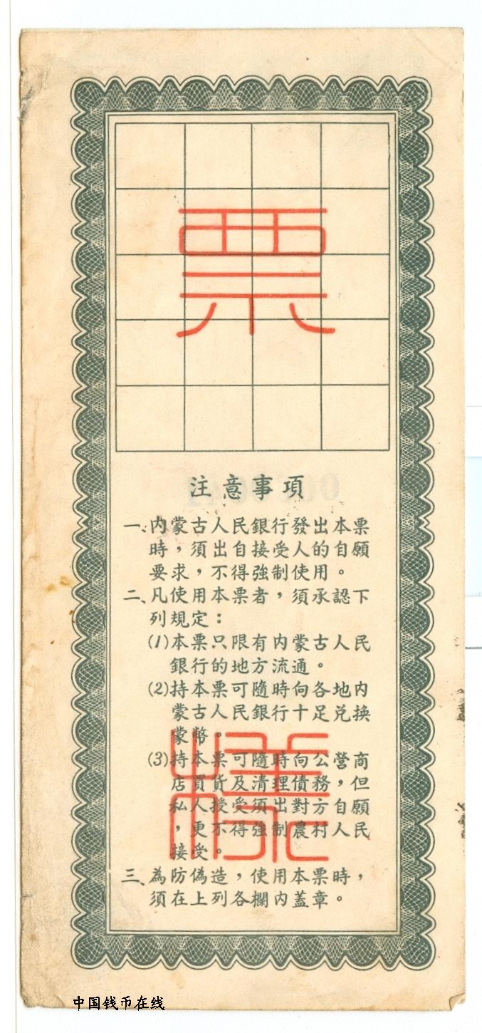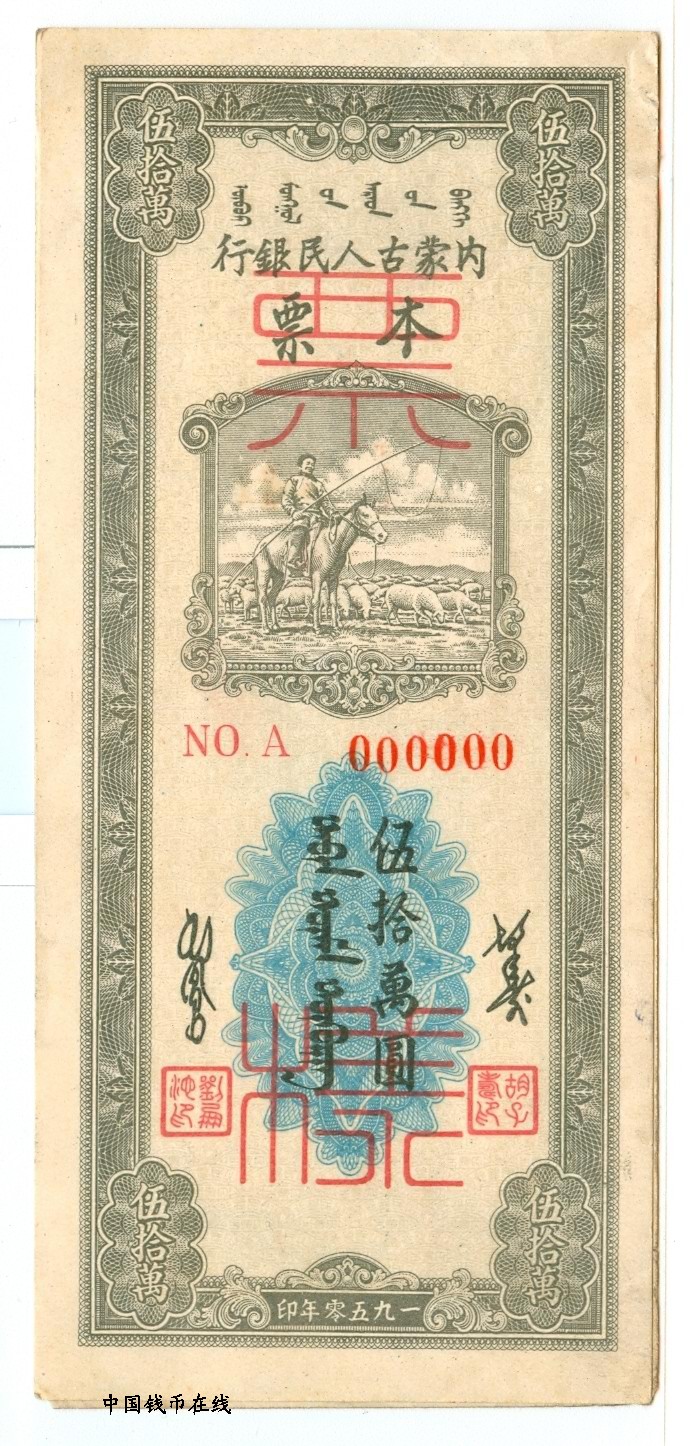 内蒙古人民银行五十万元《样票》详细资料