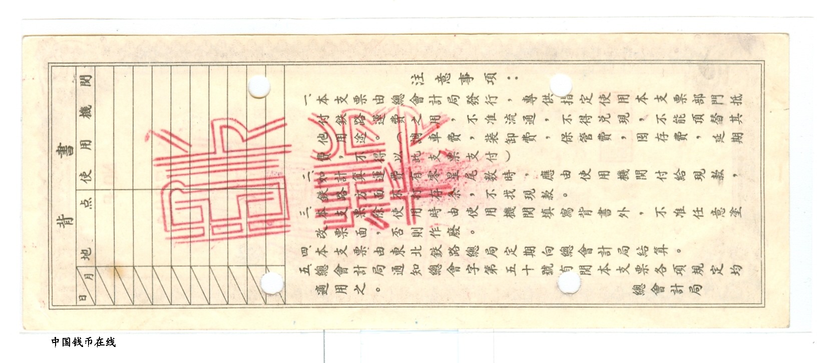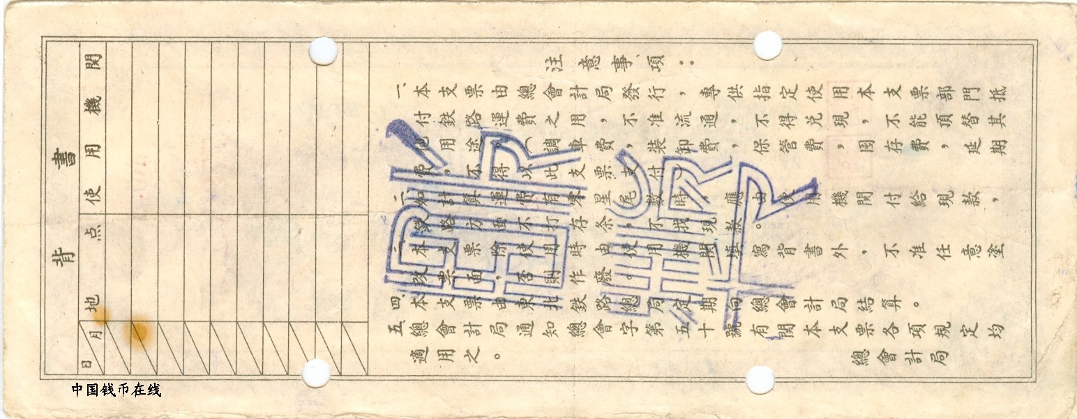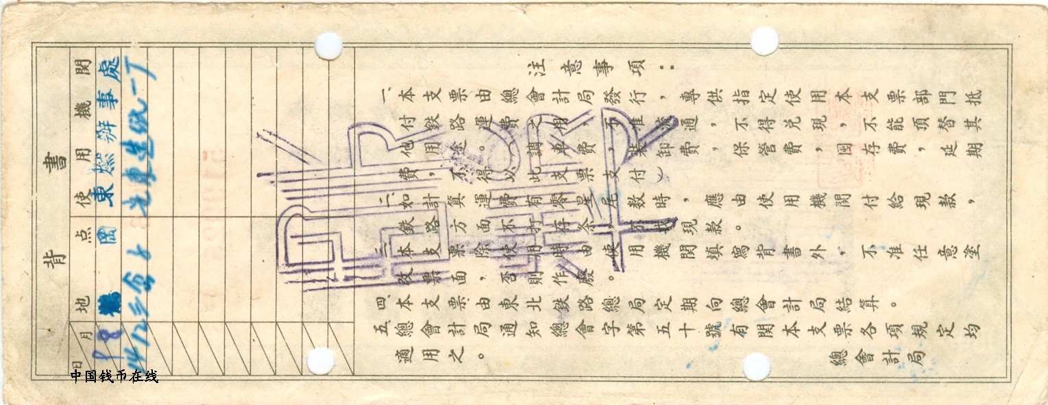 名 称:东北铁路运输转帐支票1组样票已经售出