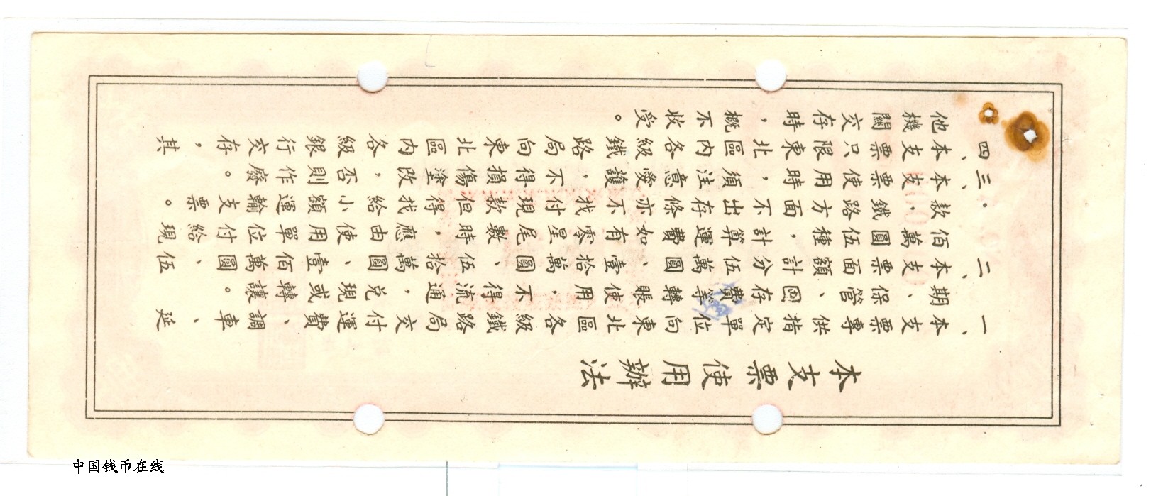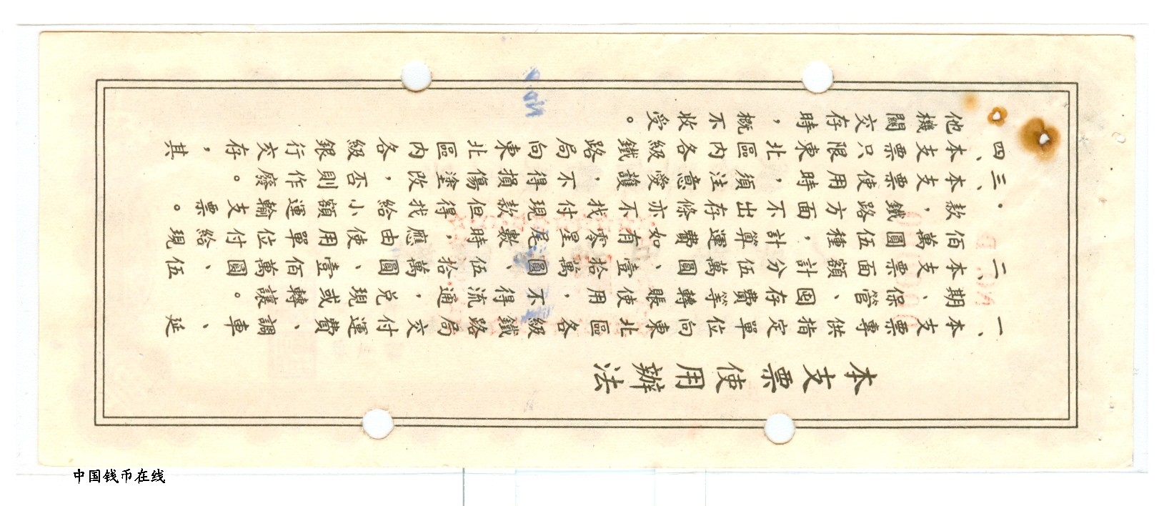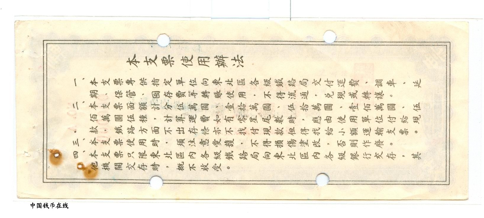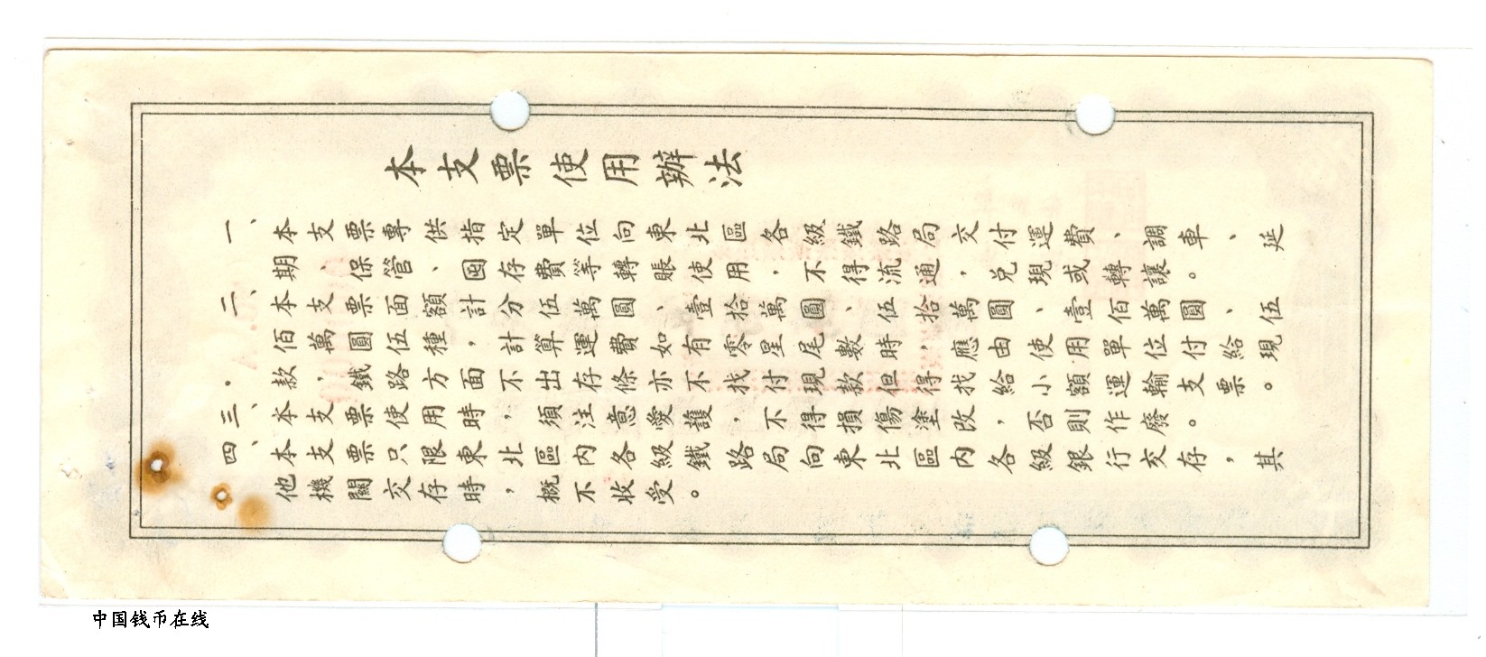 铁路运输转帐支票1组5枚1套详细资料