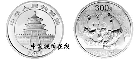 (十)1公斤圆形银质纪念币为精制币,含纯银1公斤,直径100毫米,面额300元,成色99.9%,最大发行量4000枚。
