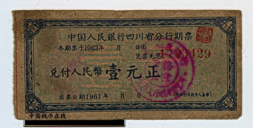 中国人民银行四川省分行1元期票详细资料