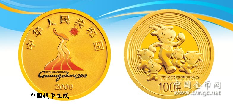 面额(元) 材质 成色(%) 质量 重量(oz) 形状 直径(mm) 最大发行量(枚) 100 金 99.9% 精制 1/4 圆形 22 30000 正面图案 第16届亚洲运动会会徽(彩色),并刊国名、年号。 背面图案 第16届亚洲运动会吉祥物和跑道组合设计,并刊“第16届亚洲运动会”中文字样及面额。 1盎司银质纪念币