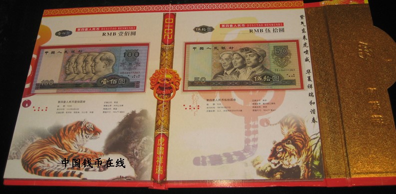 尾号4同号全新带册包括:1角、2角、5角、1元1张96年、2元1张90年版、5元、10元、1990年版50元1张.100元1张1990年版