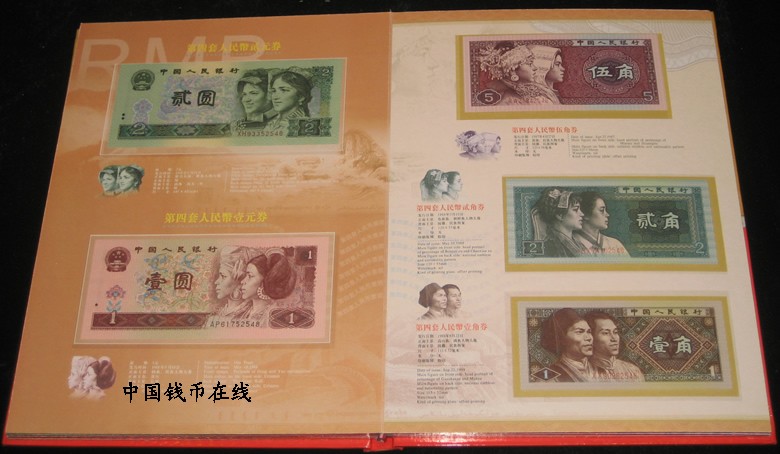 尾号4同号全新带册包括:1角、2角、5角、1元1张96年、2元1张90年版、5元、10元、1990年版50元1张.100元1张1990年版