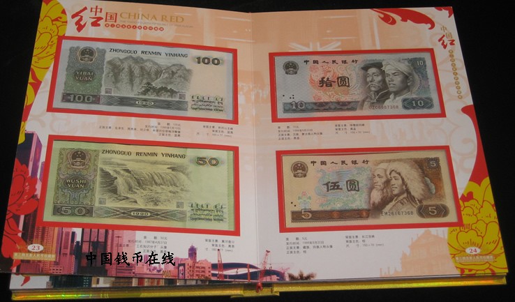 第三套小全套1角4张,2角2张,5角2张, 1元1张,2元1张,5元1张,10元1张,1分1张,2分1张,5分1张.,位同号. 四套小全套合订册,尾号4同号全新带册包括:1角、2角、5角、1元1张96年、2元1张90年版、5元、10元、1990年版50元1张.100元1张1990年版,第五套为全同号 (面值分别是100 元、50 元、20 元、10 元、5 元和 1 元) ,8位数字号码相同.