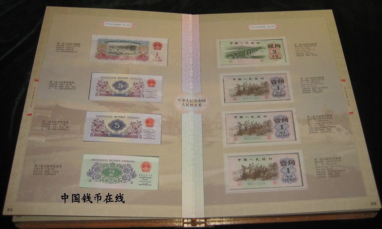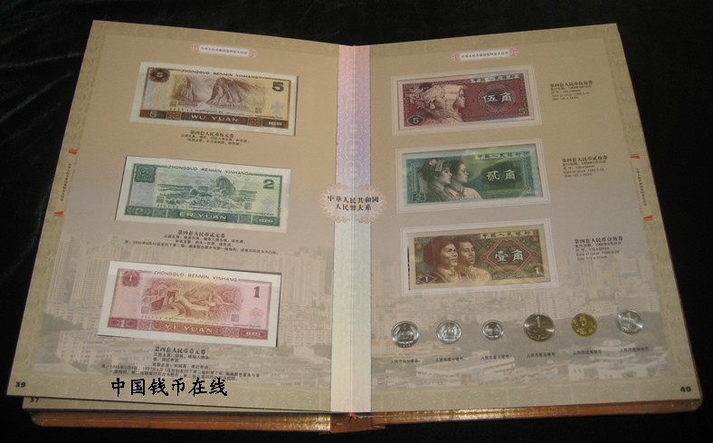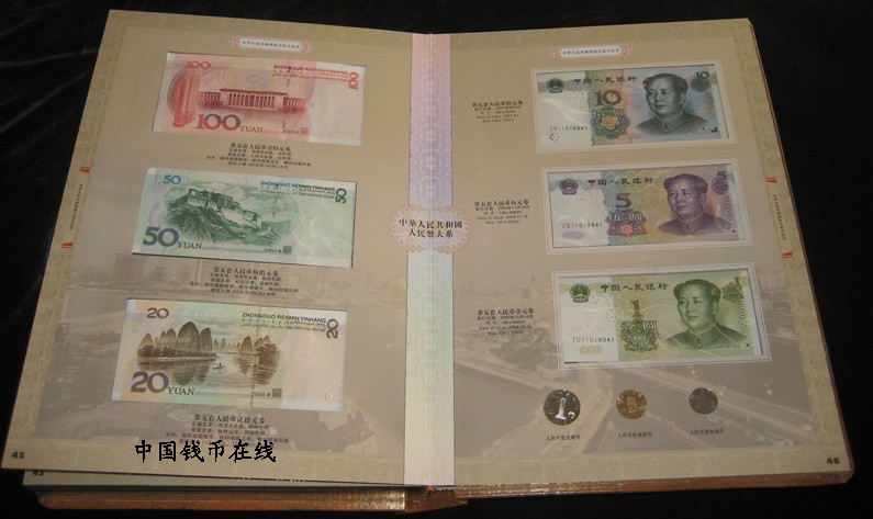 人民银行1套-5套人民币珍藏册,1套-2套为人民币微缩版珍藏,3套-5套为实币,第三套小全套1角4张,2角2张,5角2张, 1元1张,2元1张,5元1张,10元1张,1分1张,2分1张,5分1张.,位同号. 四套小全套合订册,尾号4同号全新带册包括:1角、2角、5角、1元1张96年、2元1张90年版、5元、10元、1990年版50元1张.100元1张1990年版,第五套为全同号 (面值分别是100 元、50 元、20 元、10 元、5 元和 1 元) ,8位数字号码相同.