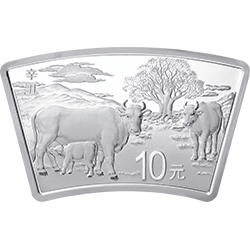 2021中国辛丑(牛)年金银纪念币30克扇形银质纪念币