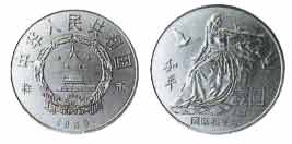 - 正面图案为中华人民共和国国名、国徽、年号,背面图案则是“和平”雕像,“和平”及“国际和平年”主题文字、面值。