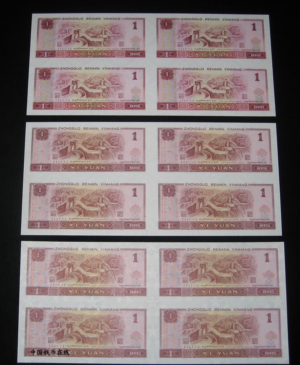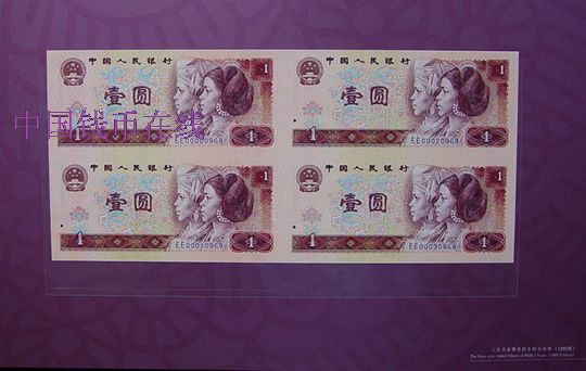 ★ 发行于2000年,发行量40万套,面值12元,包含80、90、96版四连体钞各1张。此套钞属礼品消耗良好的品种