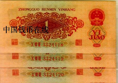 第三版人民币红壹角3张连号全新<已经售出>详细资料