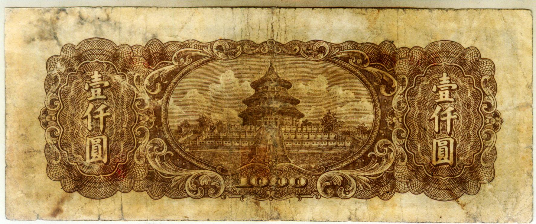 第一版人民币1000耕地6位号吗<有水印版>详细资料
