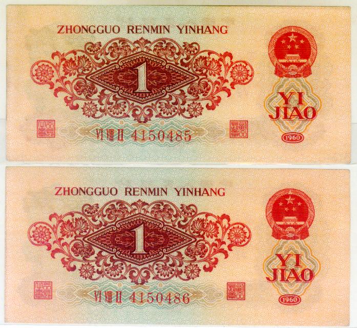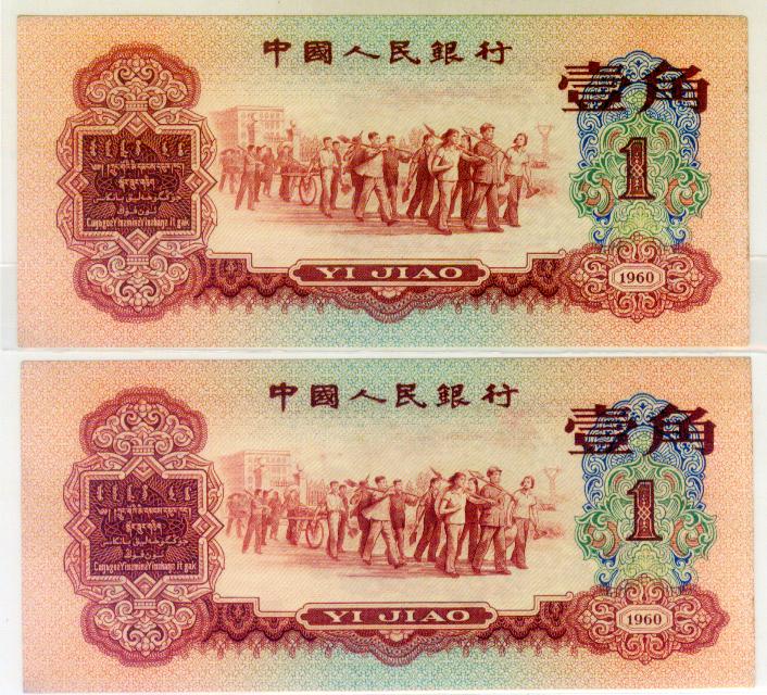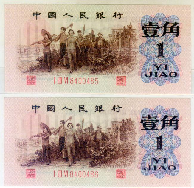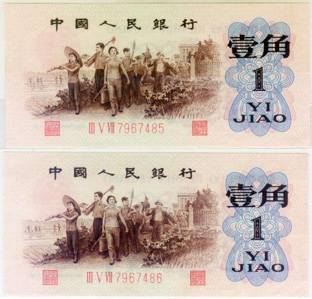 第三版人民币红壹角2张连