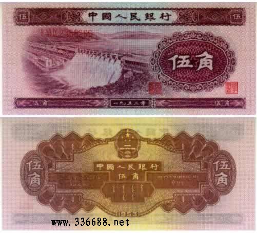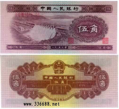 第三版人民币1972年伍角平板水印 样票