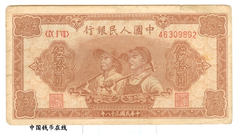 名 称:第一版人民币50元工农