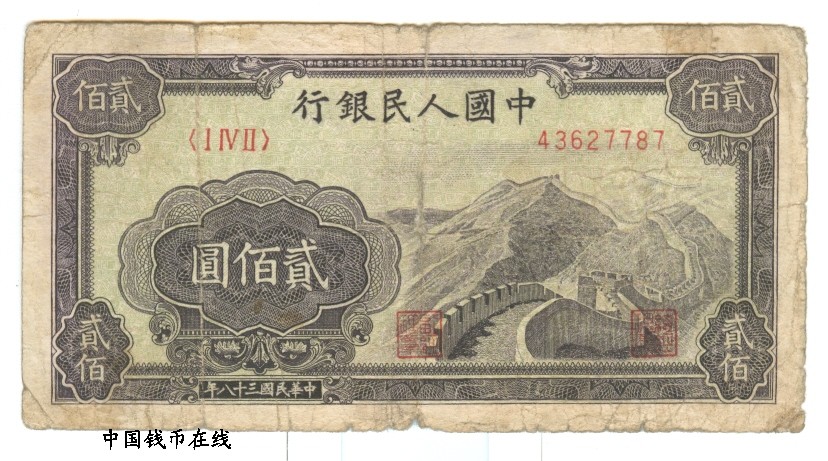 名 称:第一版人民币200圆长城