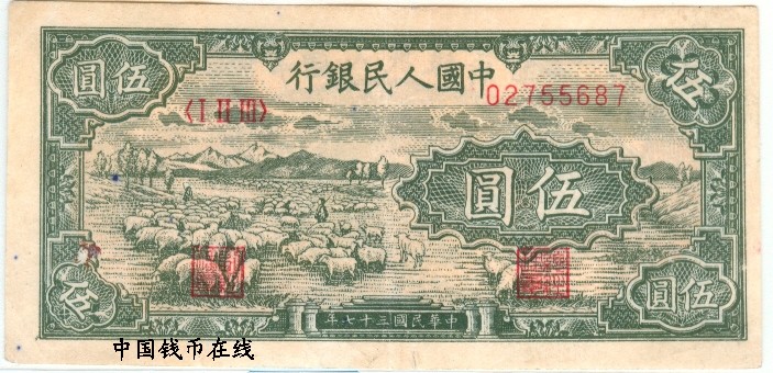 第一版人民币5元羊群