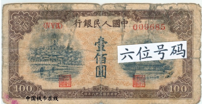 第一版人民币100黄北海宽距