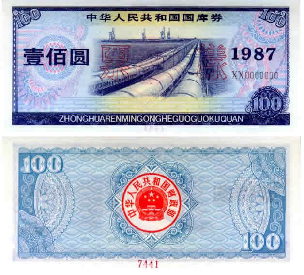 1987年100元国库券样票