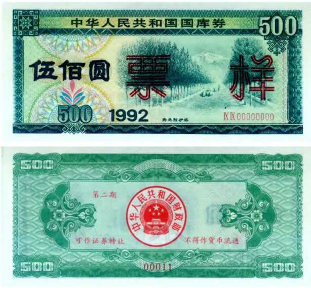 1992年500元二期国库券样票