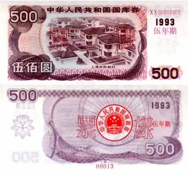 1993年500元五年期国库券样票