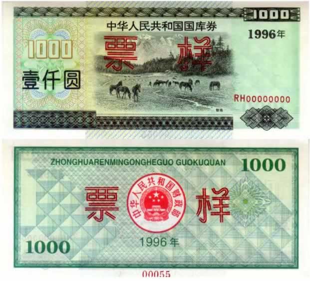 1996年1000元一期国库券样票