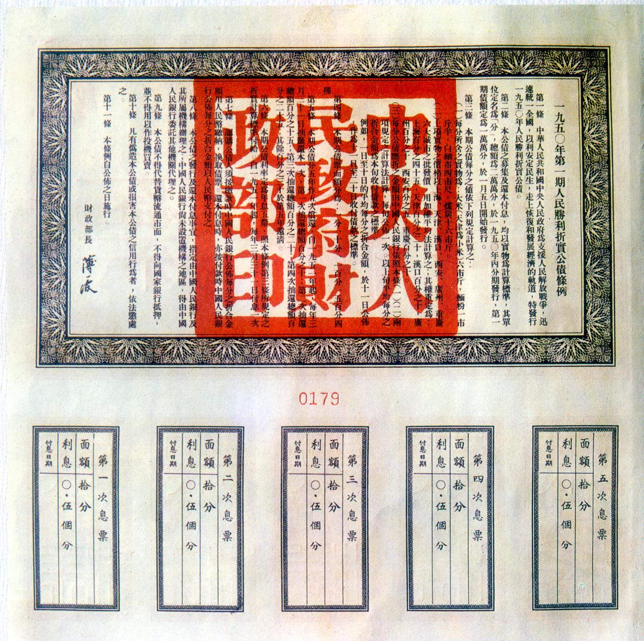 [组图]1950年第一期人民胜利折实公债券  10分         ★★★