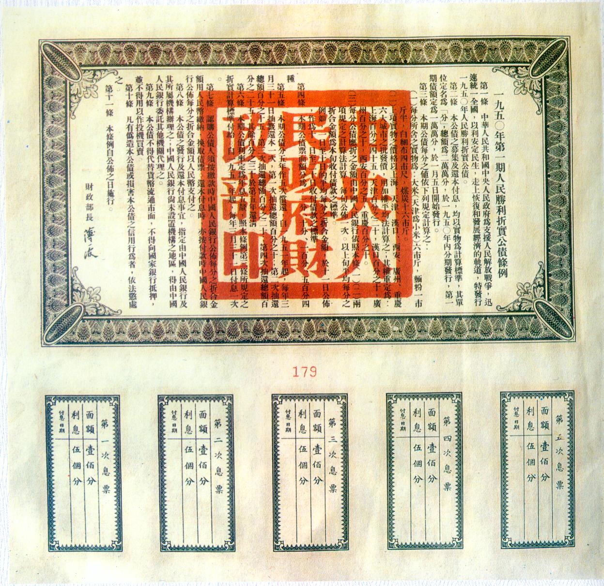 [组图]1950年第一期人民胜利折实公债券  100分         ★★★