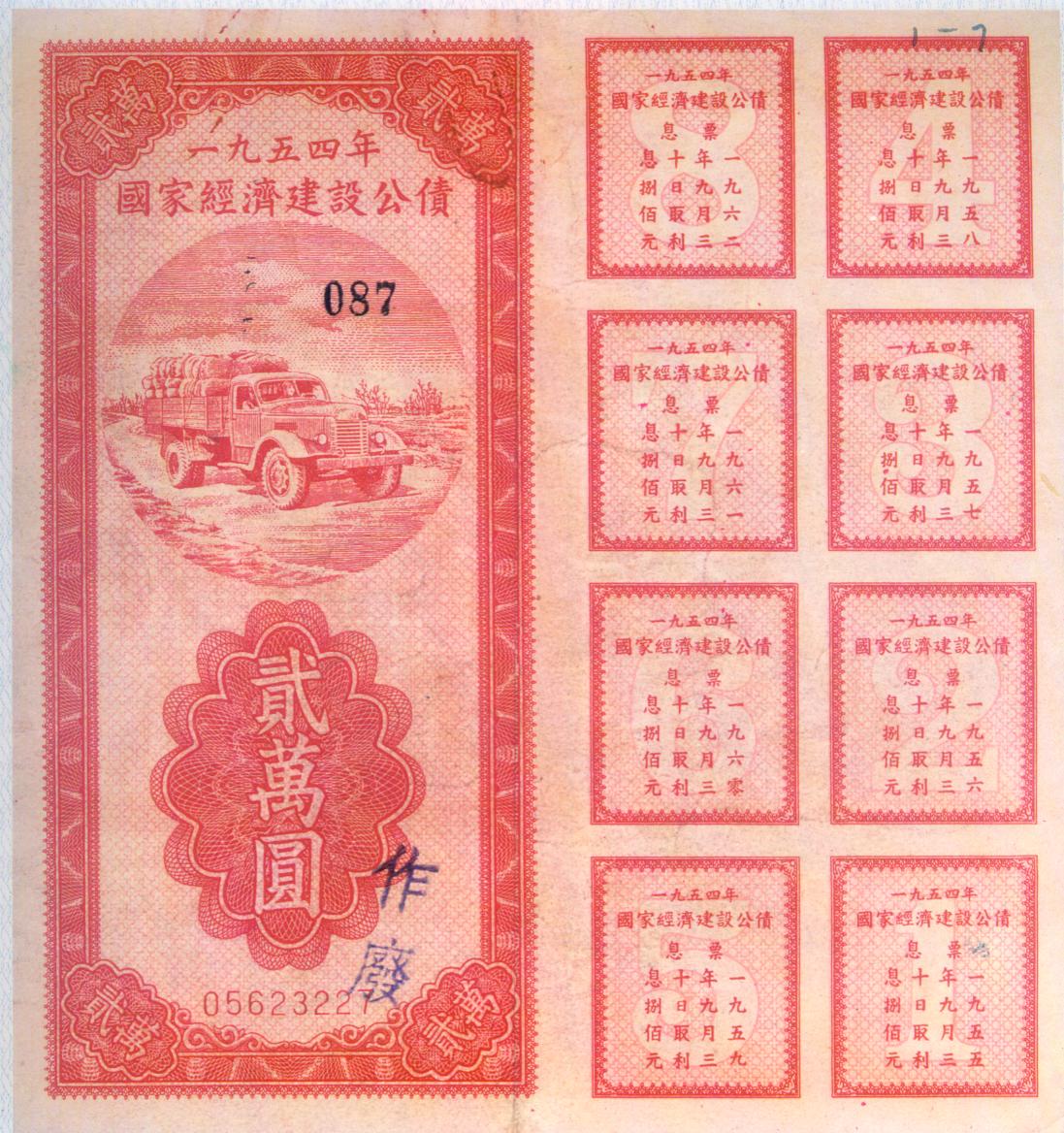 [组图]1954年国家经济建设公债   2万         ★★★