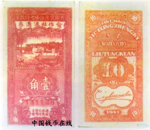 [图文]晋察冀边区第七行政合作社流通券   1角         ★★★