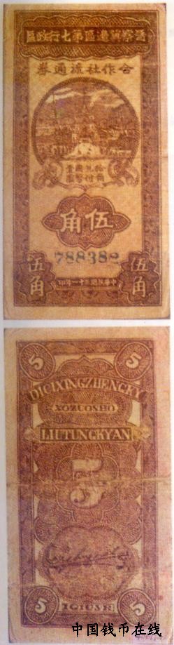 [图文]晋察冀边区第七行政合作社流通券   5角         ★★★