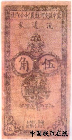 [组图]冀中区交河县农村合作社流通券   5角         ★★★
