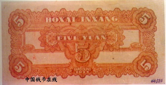 新疆省银行银元票   5元