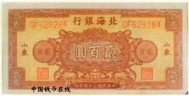 北海银行币   200元