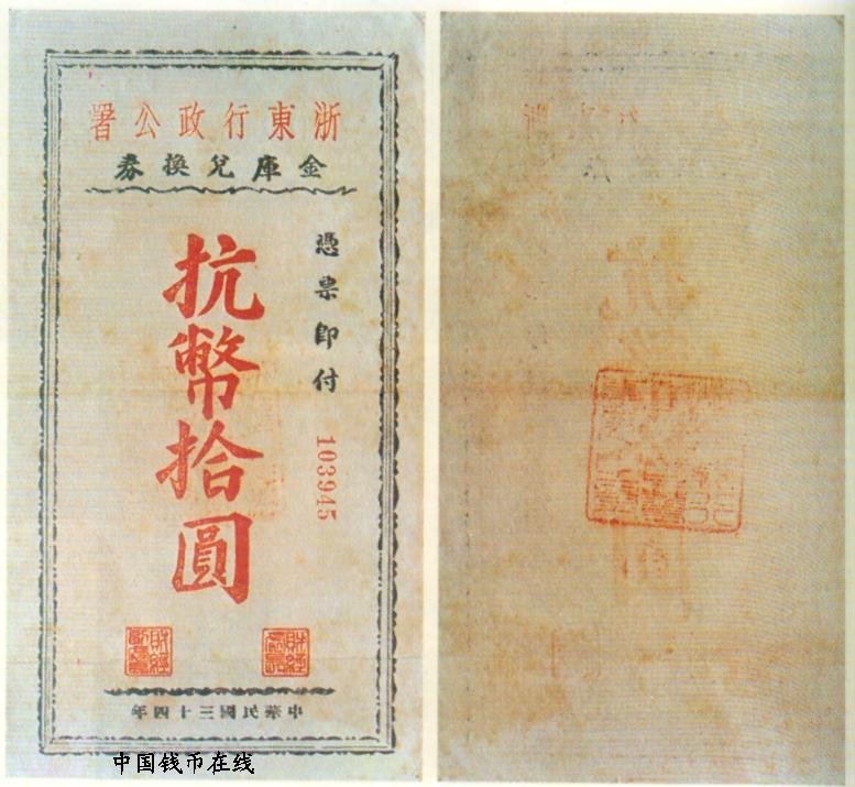 [图文]浙东行政公署金库兑换券   10元         ★★★