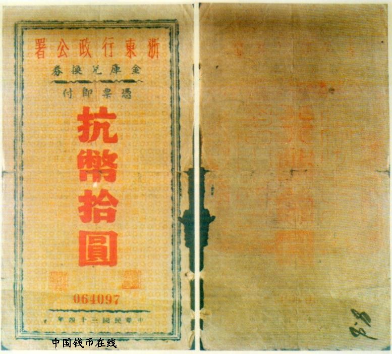 [图文]浙东行政公署金库兑换券   10元         ★★★
