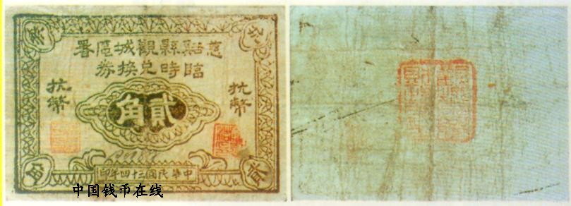 [图文]慈谷县观城区署临时兑换券  2角         ★★★