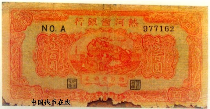 [组图]热河省银行地方流通券   100元         ★★★