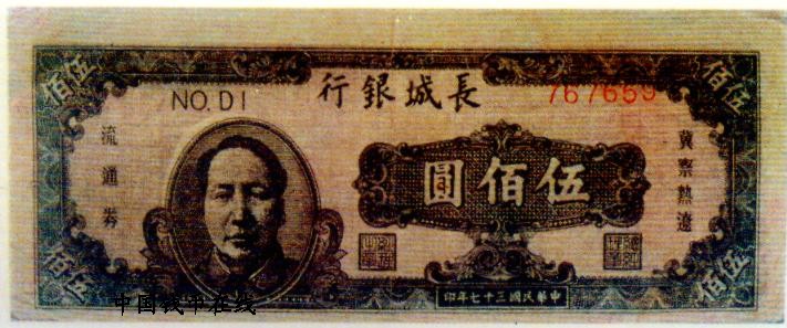 [组图]长城银行冀察热辽流通券   500元         ★★★