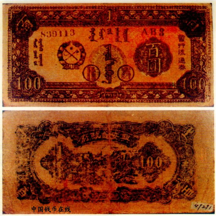 [图文]兴安省政府暂行流通券   100元         ★★★