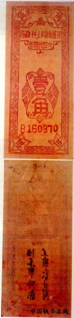 [图文]瓊崖临时人民政府光银代用券   1角         ★★★