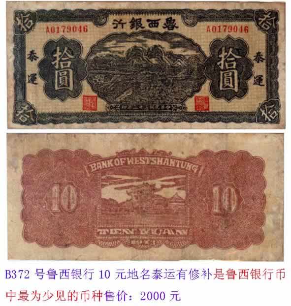 鲁西银行10元加盖泰运