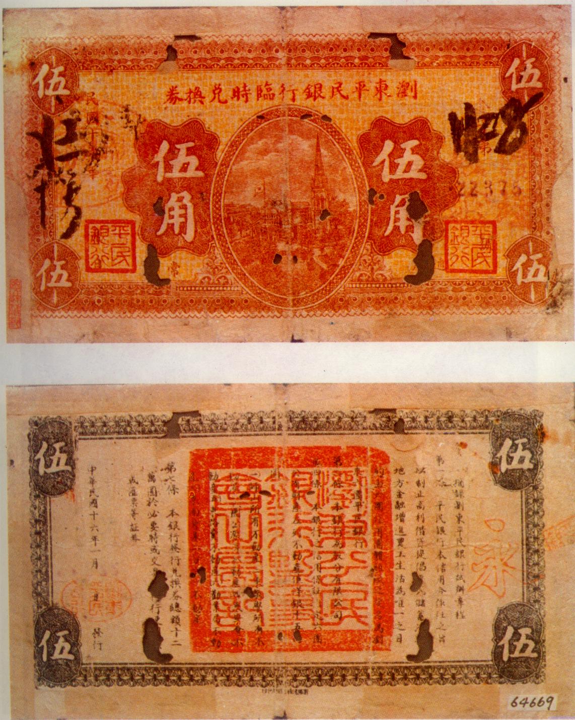 [组图]浏东平民银行临时兑换券   5角         ★★★