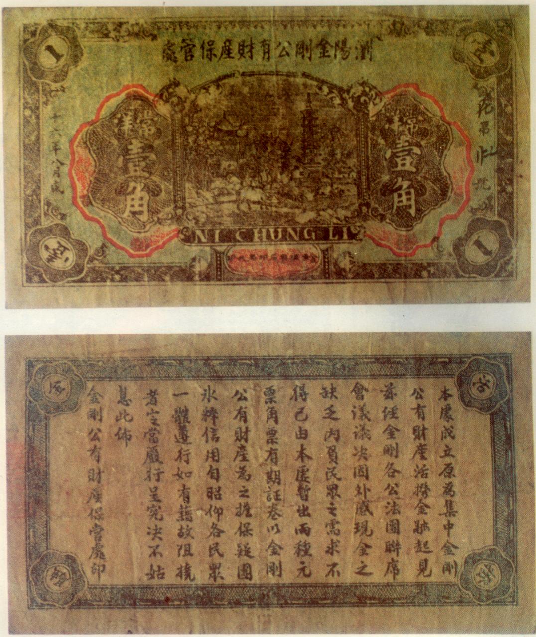 [组图]浏阳金刚公有财产保管处有期证券   1角         ★★★