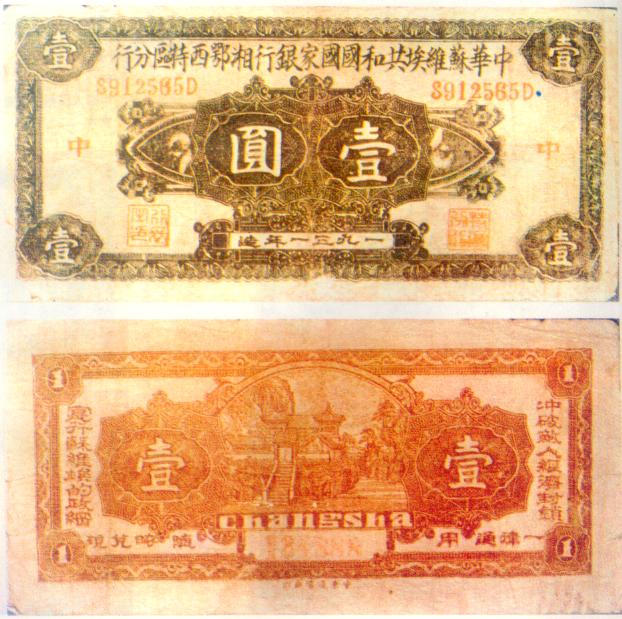 [图文]中华苏维埃共和国国家银行湘鄂西特区分行银币券  1元         ★★★